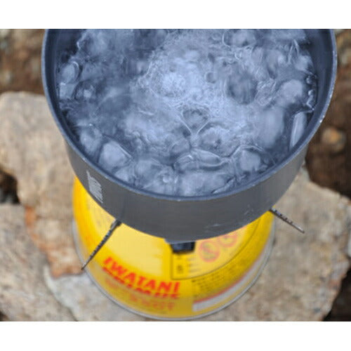 ナベ(コッヘル)を乗せてはじめてわかるのがX字ゴトクの防風性能です。コッヘルとX型グリッドにより、バーナーヘッドを4つに区切り、一つの区画が風で消えてしまっても他の区画は着火を保つように設計されています。コッヘルとX型グリッドで風の吹き抜けを無くしますので、効率よく調理が行えます。